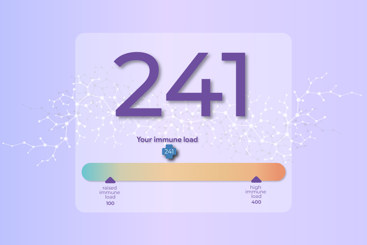 Your total IgG reactivity shows the current immune load your body is experiencing with your current diet. Research shows that by following your IgG guided dietary